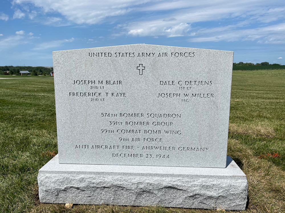 Joe “Bud” Miller was born December 27, 1924, in Mankato, Minnesota, one of 11 children born to Michael and Catherine Miller. Joe entered military service on June 11, 1943, during WWII where he became an armored tail gunner on a B-26 Marauder. He was assigned to his crew in July 1944 at Barksdale Field, Louisiana.