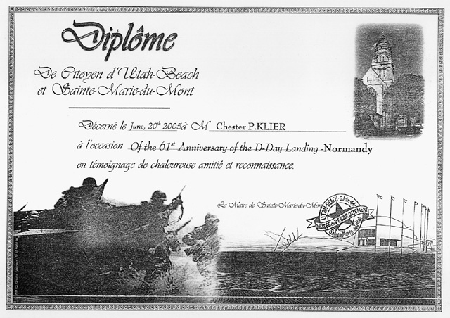 Chester Klier, Honorary Citizen, Utah Beach, France