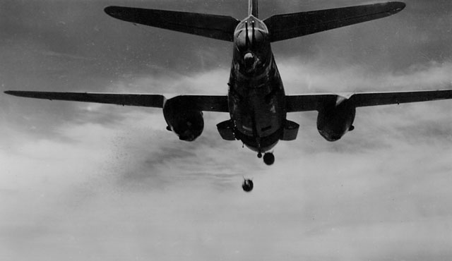 Lt. Johnson had been a photographer for a San Diego paper so he knew what we needed for a dark room. We were able to get all the supplies we needed from the base photo lab. We were able to get long rolls of film about twelve inches wide and three inches thick. I made an enlarger from tin from a bomb case which fit on the back of Lt. Johnson's good camera which worked fine. We could not use the enlarger until nightfall when they turned the lights on. The big light bulb in the enlarger took a lot of electricity, this sometimes caused the lights in the squadron to dim so headquarters would send someone down and tell us to turn it off.