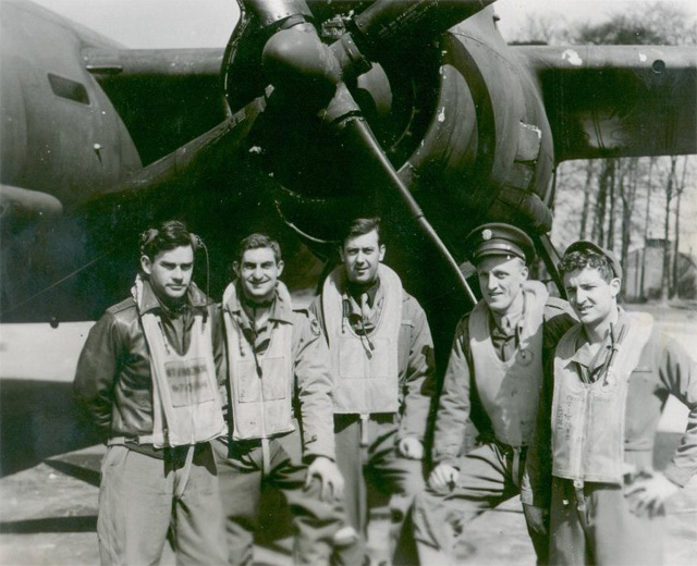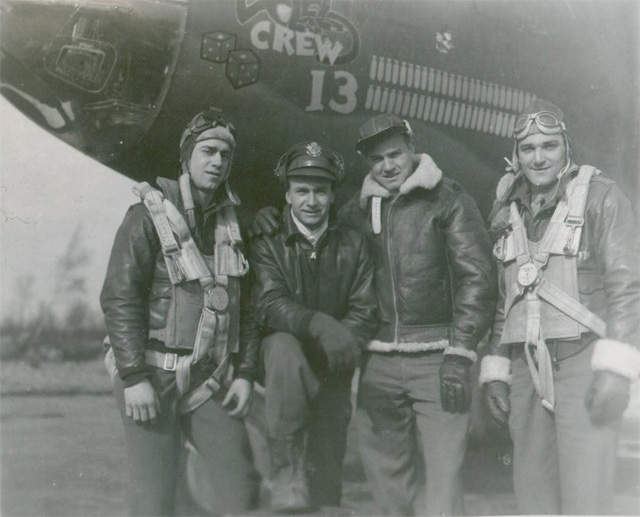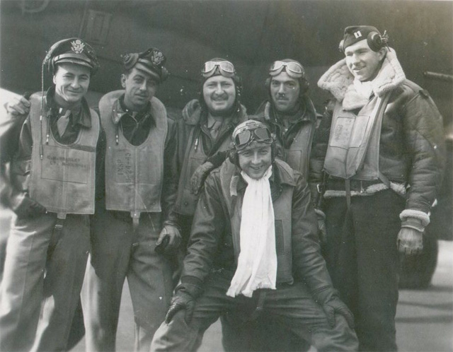 Then L-R: Ernest Rayford "Brad" Bradley; Nav. Bomb. Dwight Edwards; Radio op-gunner