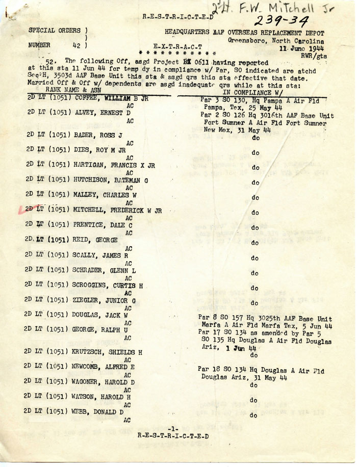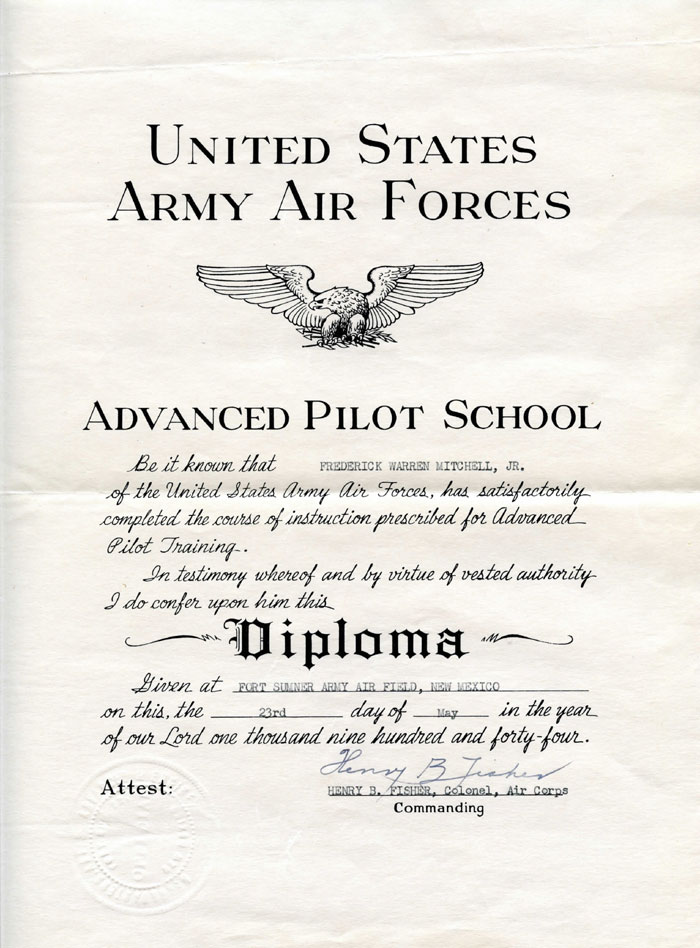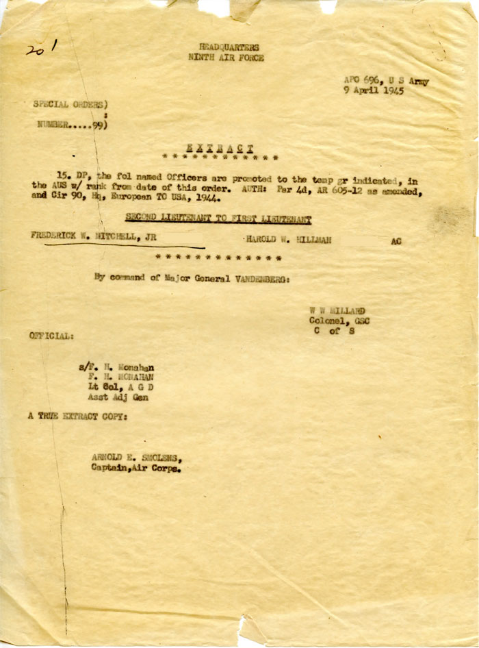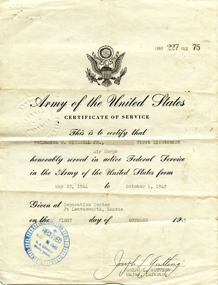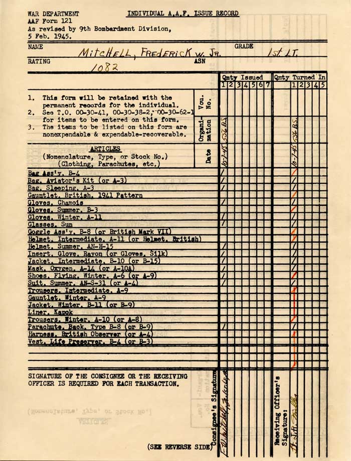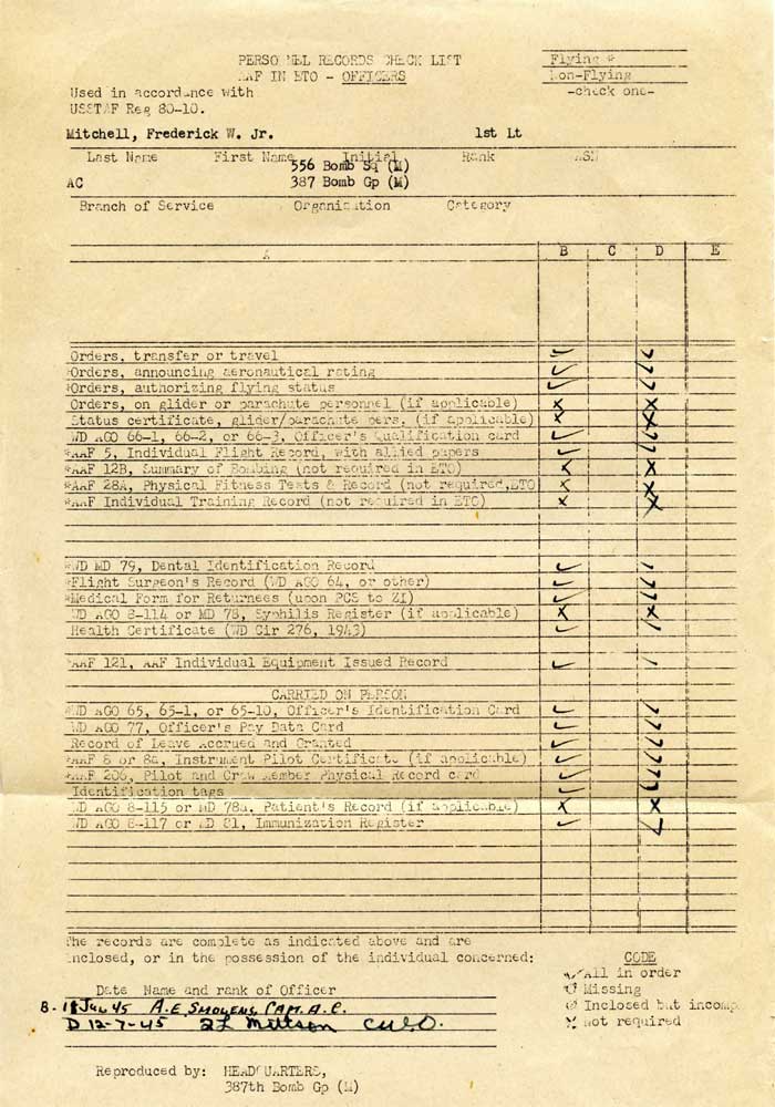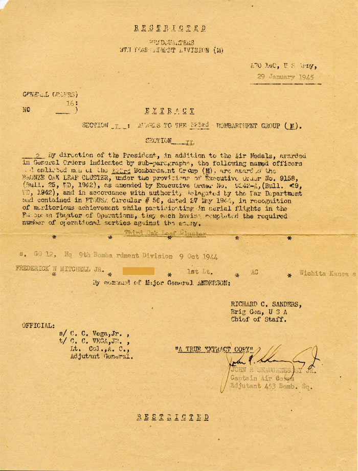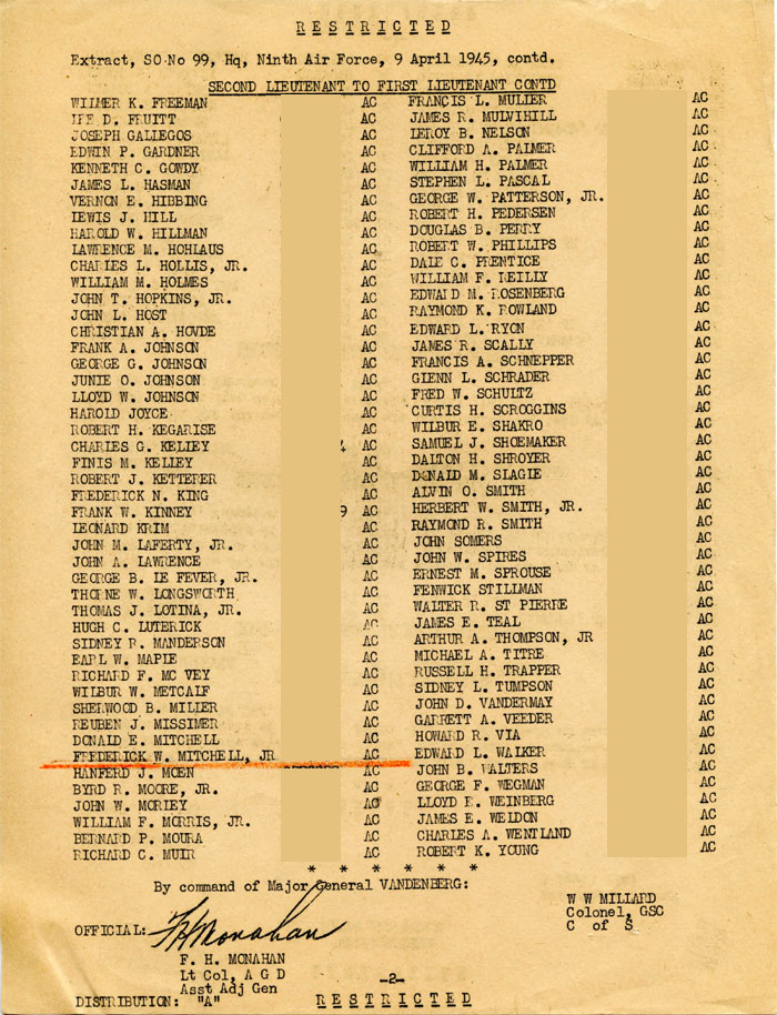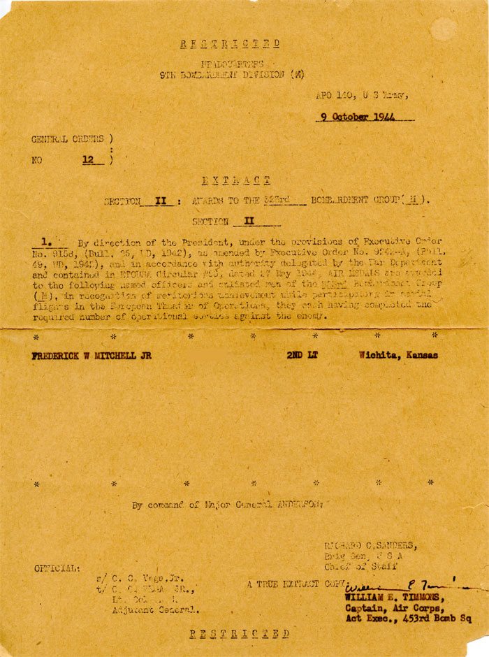Frederick Warren Mitchell, Jr. 453rd Bomb Squadron, 323rd Bomb Group 556th Bomb Squadron, 387th Bomb Group