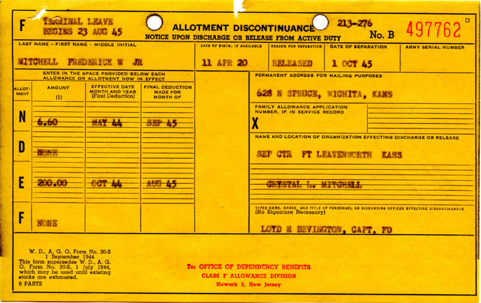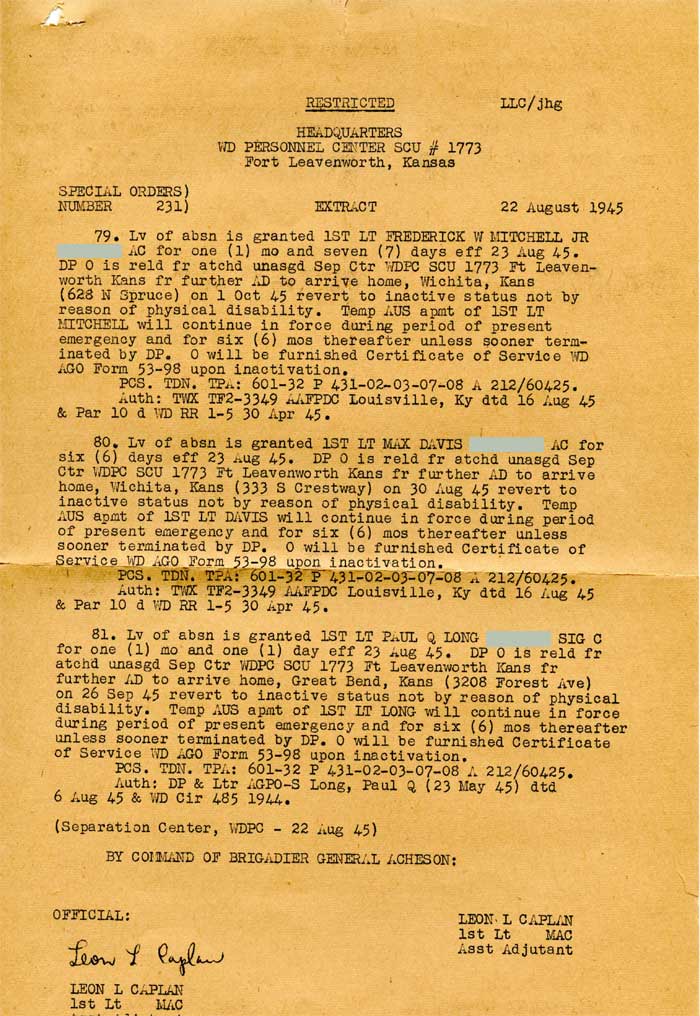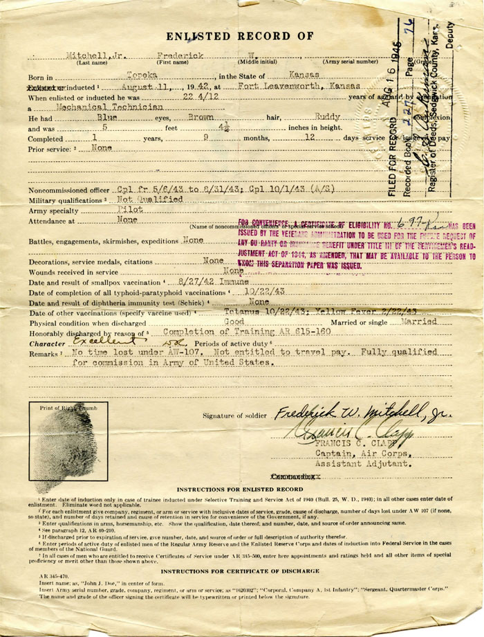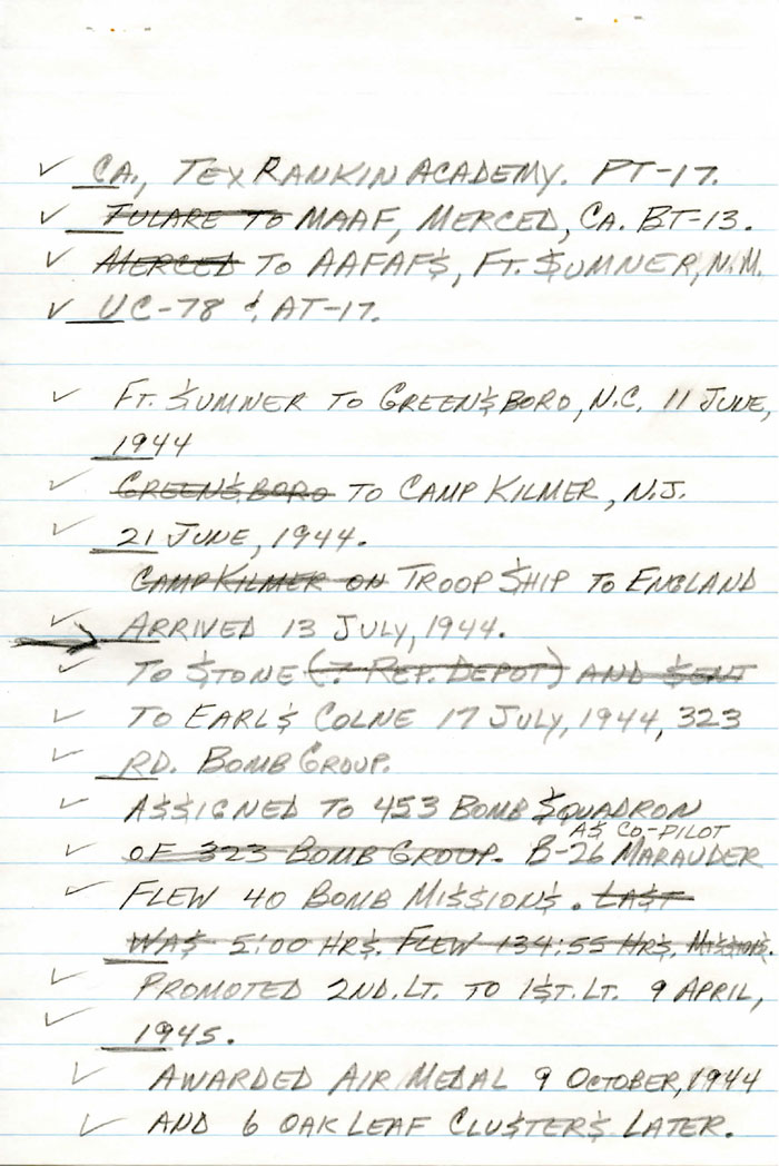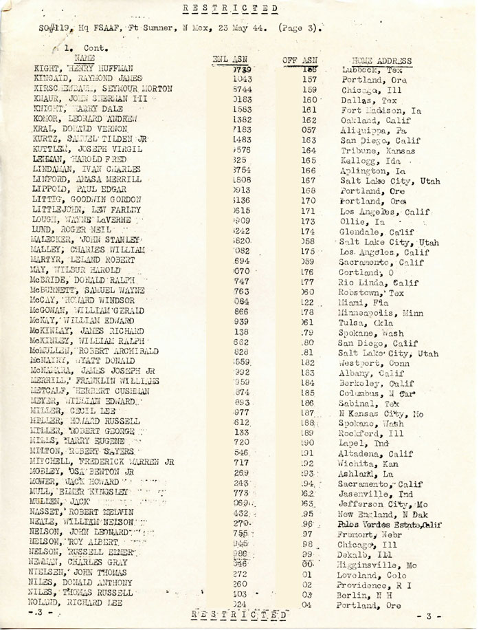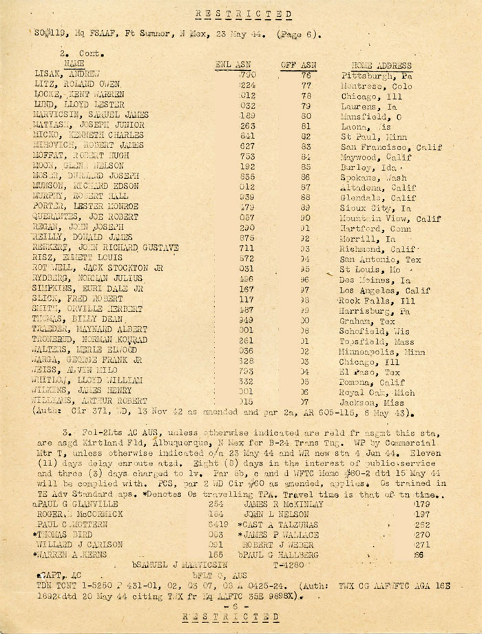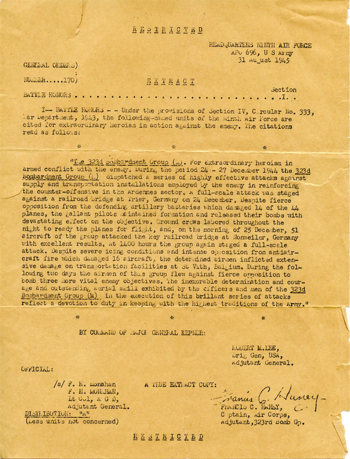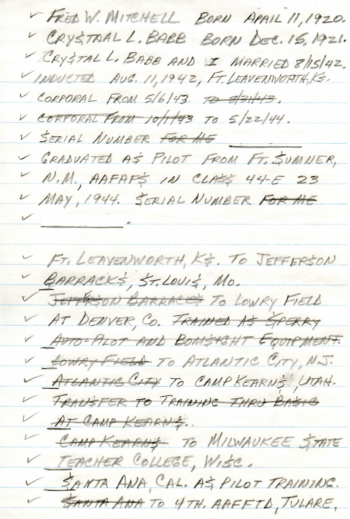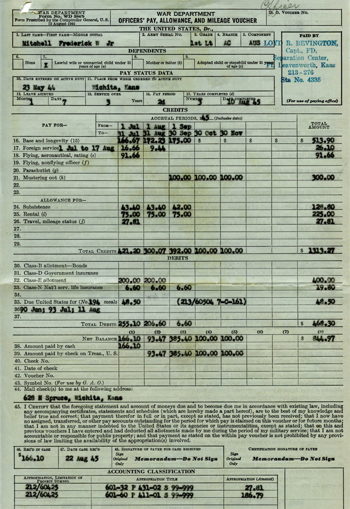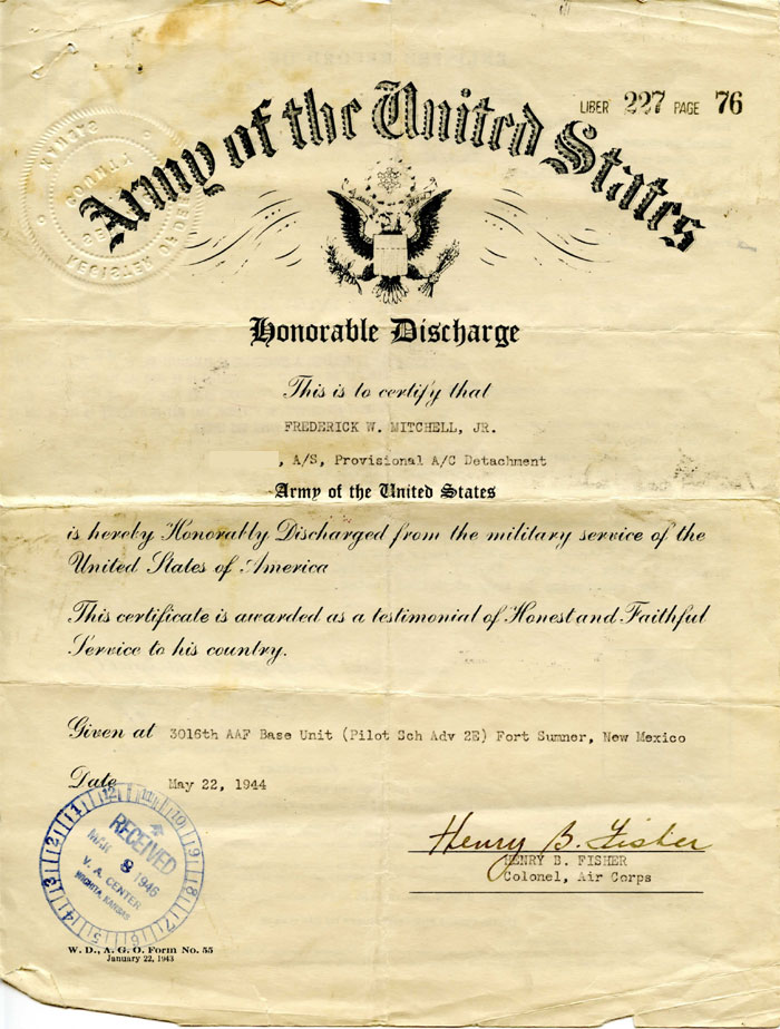 Frederick Warren Mitchell, Jr. 453rd Bomb Squadron, 323rd Bomb Group 556th Bomb Squadron, 387th Bomb Group