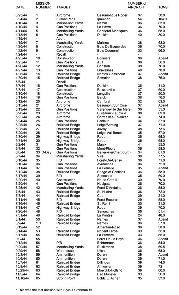 DATE | NUMBER TARGET | # of AIRCRAFT | TONS
