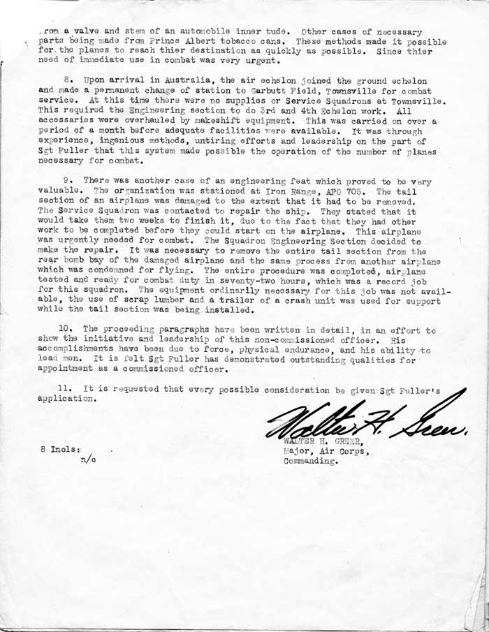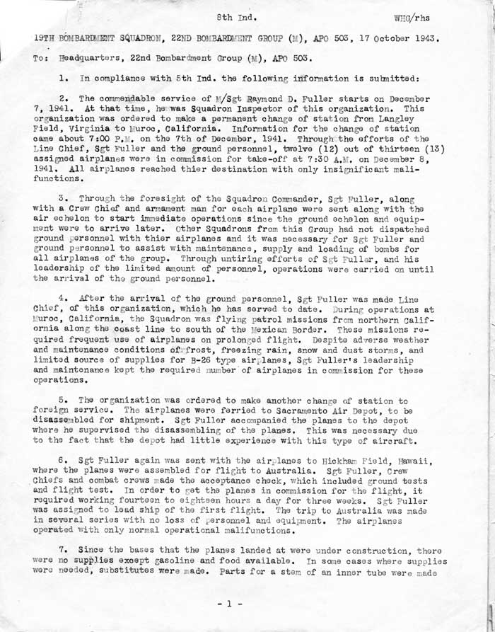 B-26 type airplanes, Sgt. Fuller’s leadership and maintenance kept the
